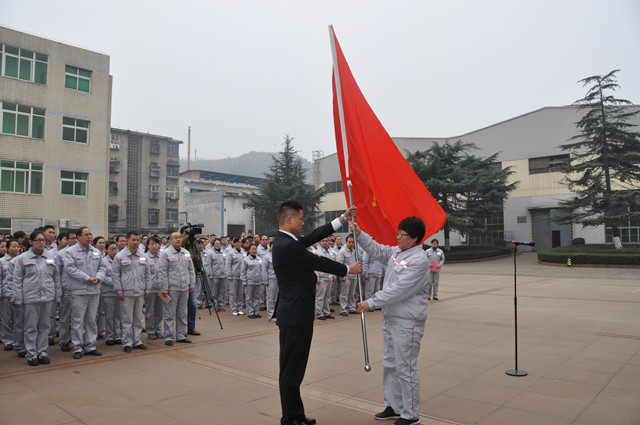 19日上午9時18分,公司在和鼎廣場舉行了銷售收入跨越五億元慶祝儀式。首先,杜孔明總經理致辭,熱烈祝賀東風精鑄銷售收入跨越五億元大關;隨后,公司銷售人員代表誓師,黨委書記孫長虹向銷售總部授予“邁向八億”戰旗;慶祝儀式上,與會員工在印有“倡導精益,打擊陋習” 倡議書的噴繪上簽字,表達堅決與陋習告別的決心。慶祝活動還進行了喜慶歡樂的拔河比賽。