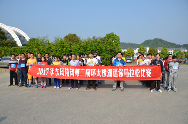 2017年?yáng)|風(fēng)精為了進(jìn)一步踐行 “快樂(lè)工作、健康生活”的工作理念,豐富員工文體活動(dòng)內(nèi)容,特舉行第二屆東風(fēng)精鑄環(huán)太極湖迷你馬拉松運(yùn)動(dòng)會(huì),此次運(yùn)動(dòng)會(huì)由東風(fēng)精鑄工會(huì)及徒步、長(zhǎng)跑協(xié)會(huì)聯(lián)合舉辦,比賽路線全長(zhǎng)8.8公里,共有8個(gè)代表團(tuán)100人參加。