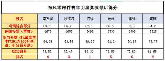 【公司榮譽】我公司陳娟在東風零部件集團公司舉辦的“青年明星”竟演活動中榮獲第一名